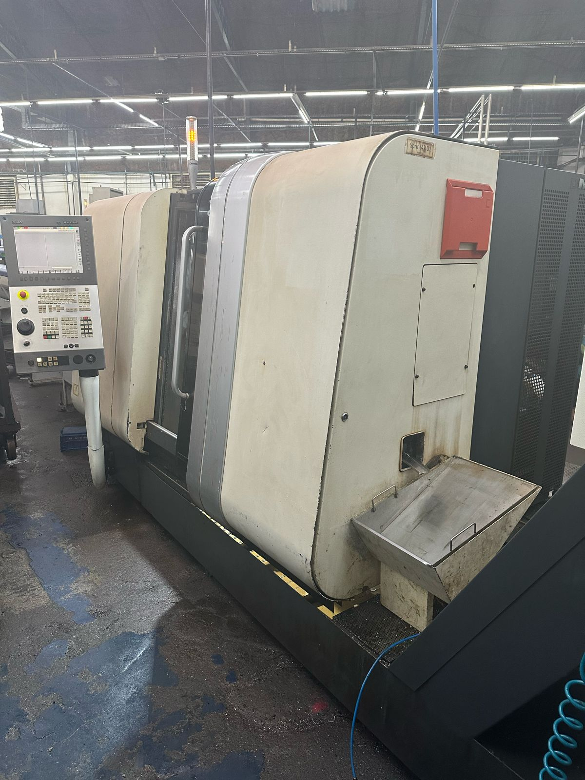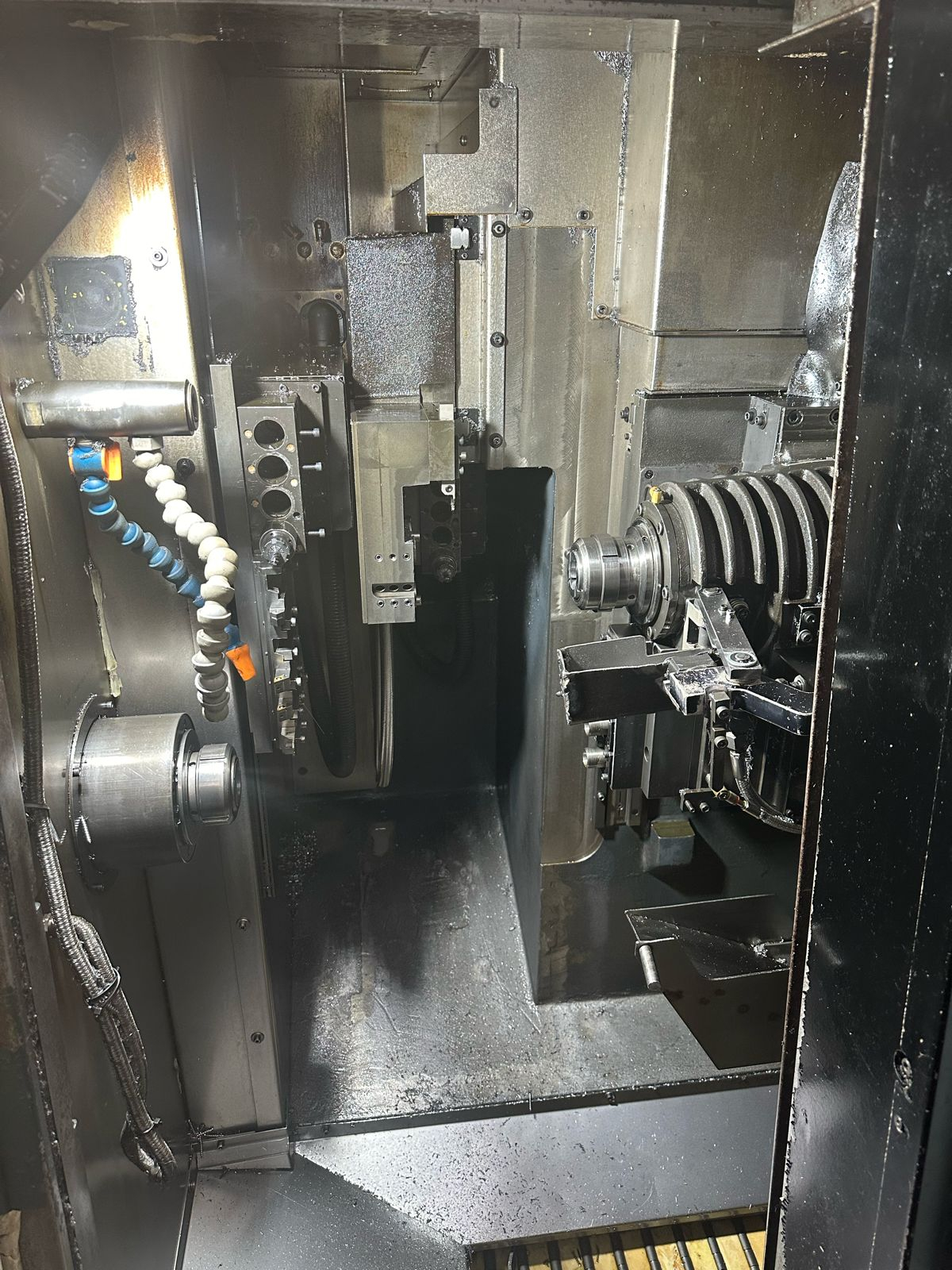 Centro de torneamento CNC projetado para produção seriada de peças usinadas a partir de barras metálicas. A máquina combina operações de torneamento, fresamento, furação, rosqueamento e interpolação, permitindo a fabricação completa da peça em um único ciclo.