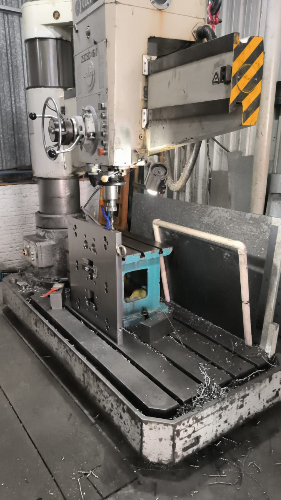 Execução de furos em peças de grande porte com mobilidade do braço radial, permitindo ampla área de trabalho sem movimentação da peça.