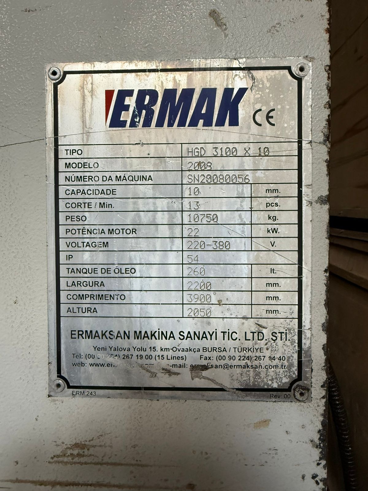 Peso da máquina: 10.750kg