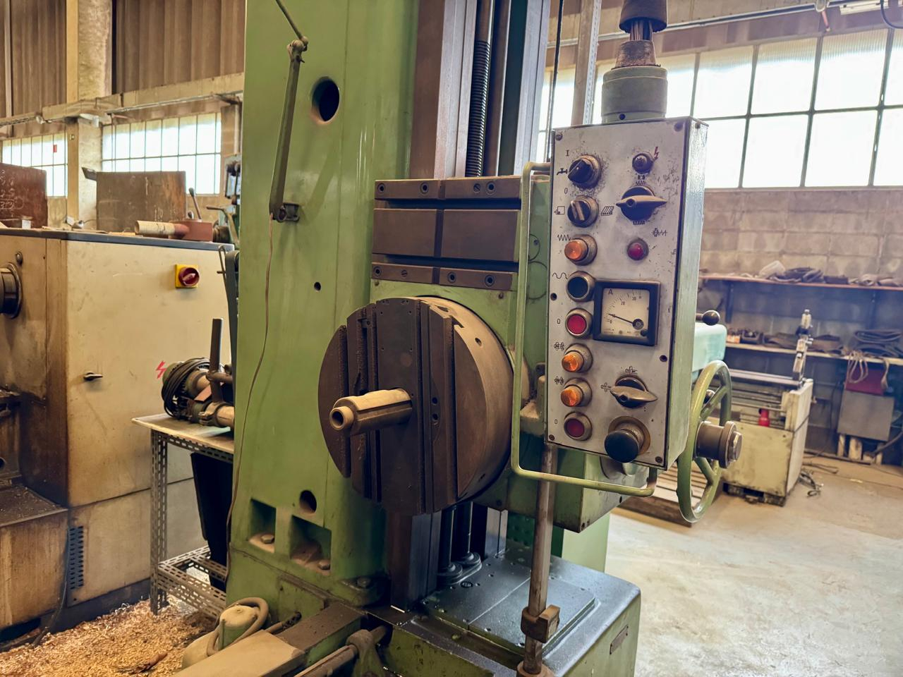 É uma máquina robusta e versátil, utilizada para usinar furos e superfícies em peças grandes, garantindo precisão e estabilidade em processos de usinagem pesada.