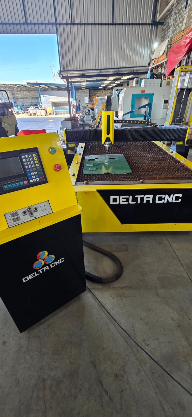 Equipamento projetado para corte térmico de chapas metálicas utilizando tecnologia plasma de alta potência, permitindo cortes rápidos, precisos e automatizados através de controle CNC.